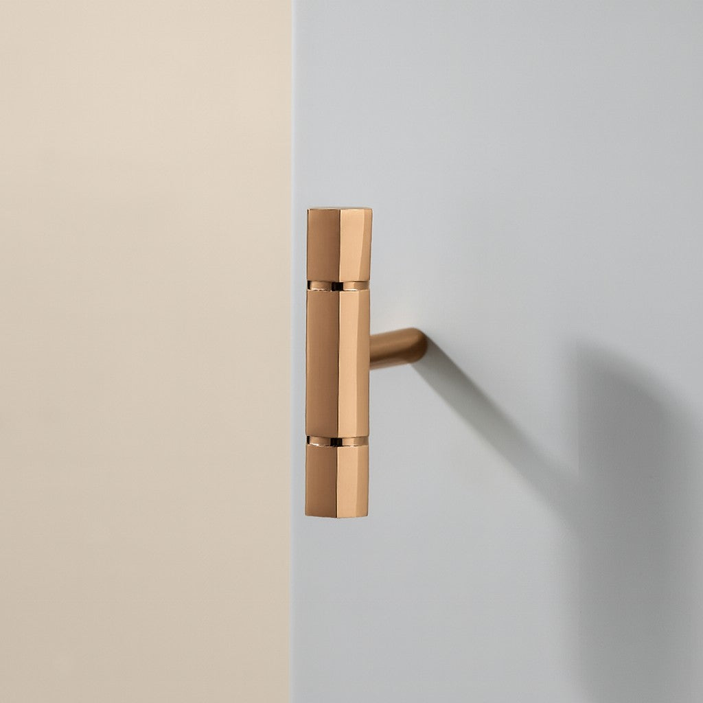 Sleek T-bar in solid brass with a polished finish, available in three elegant versions: Black Titanium, Chrome, and Rose Gold. The handles in the 3109 series feature a modern and minimalist design that combines clean lines with an exclusive finish.