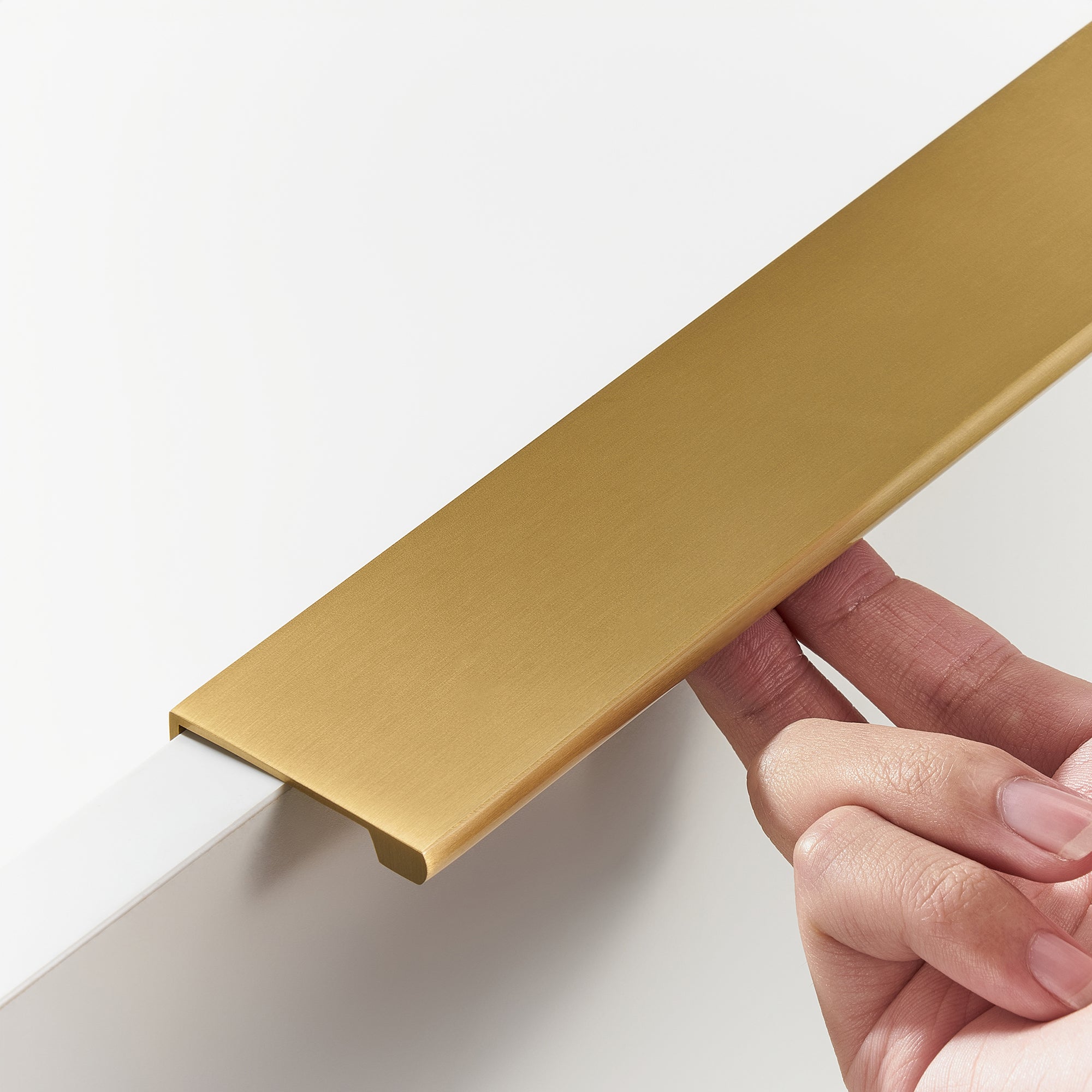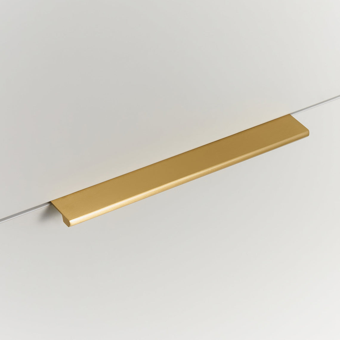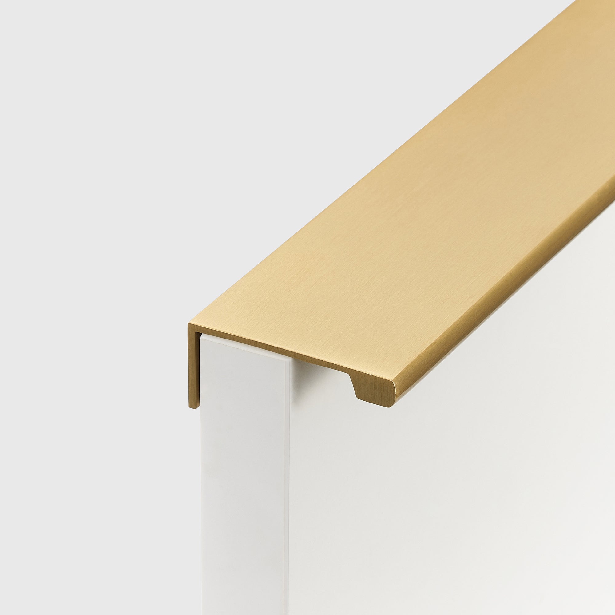 Messing handgreep met profiel en geborstelde afwerking. Strak en modern ontwerp, geschikt voor zowel keukenkastjes als eigentijdse halmeubels. Dankzij de slimme bevestiging aan de achterkant van de kastdeur is doorboren niet nodig, wat niet alleen het originele oppervlak van de kast behoudt, maar ook toekomstige vervangingen zonder zichtbare gaten mogelijk maakt. De geborstelde afwerking voegt een exclusieve uitstraling toe en draagt bij aan een duurzame, verfijnde stijl in huis.