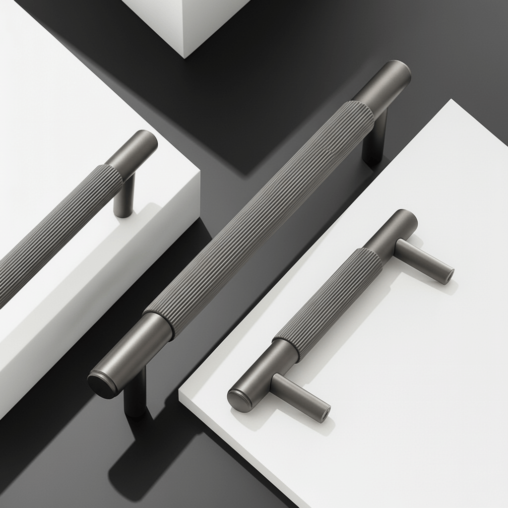 Szary uchwyt z litego mosiądzu z żłobioną powierzchnią. Nowoczesny uchwyt i jeden z naszych absolutnych bestsellerów w sklepie. Pasuje zarówno do frontów kuchennych, jak i do szafki łazienkowej lub mebli. Jego solidna waga w połączeniu ze żłobionymi detalami nie pozostaje niezauważona. Uchwyt premium dla tych, którzy cenią sobie bogactwo detali i jakość.
